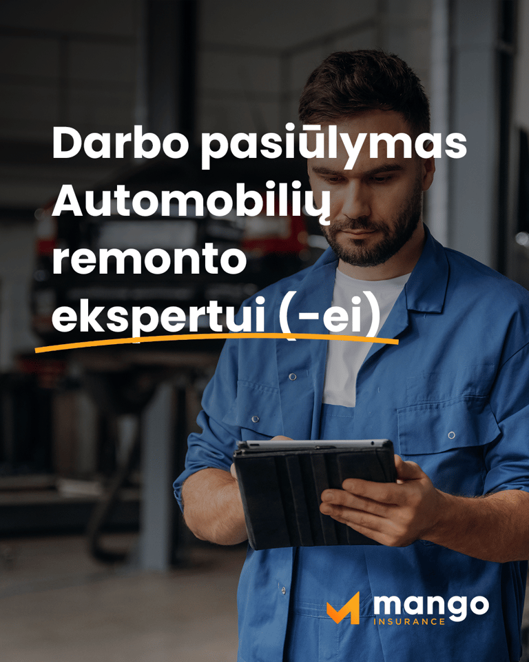 Mango Insurance augina žalų administravimo komandą ir kviečia prisijungti automobilių remonto ekspertą (-ę), puikiai besigaudantį automobilio sandaroje, gedimų diagnostikoje ir remonto sąmatose. Būsite svarbi grandis ir padėsite klientams sklandžiai išspręsti gedimo situacijas – nuo pranešimo registravimo iki sprendimo dėl draudžiamumo.